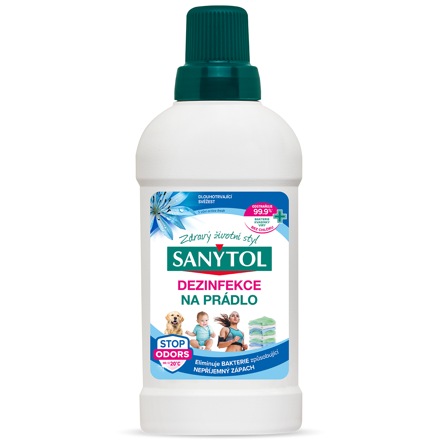 Díky textilnímu dezinfekčnímu prostředku Sanytol si můžete užít prádlo hygienicky čisté, bez zápachu a s intenzivní svěžestí. Jeho TROJITÉ ÚČINKY odstraňují 99,9 % bakterií, Candida albicans a virů, jako je lidský koronavirus 229E a H1N1. Navíc jeho exkluzivní technologie STOP ODORS: Odstraňuje nepříjemné pachy z oblečení tím, že ničí bakterie, které je způsobují Bojuje s biofilmem, který způsobuje zápach uvnitř pračky, čímž zabraňuje jeho hromadění a prodlužuje svěžest vašeho prádla. Jeho složení je účinné i při praní na nízkou teplotu a krátkých cyklech a je vhodné jak pro bílé, tak barevné prádlo.